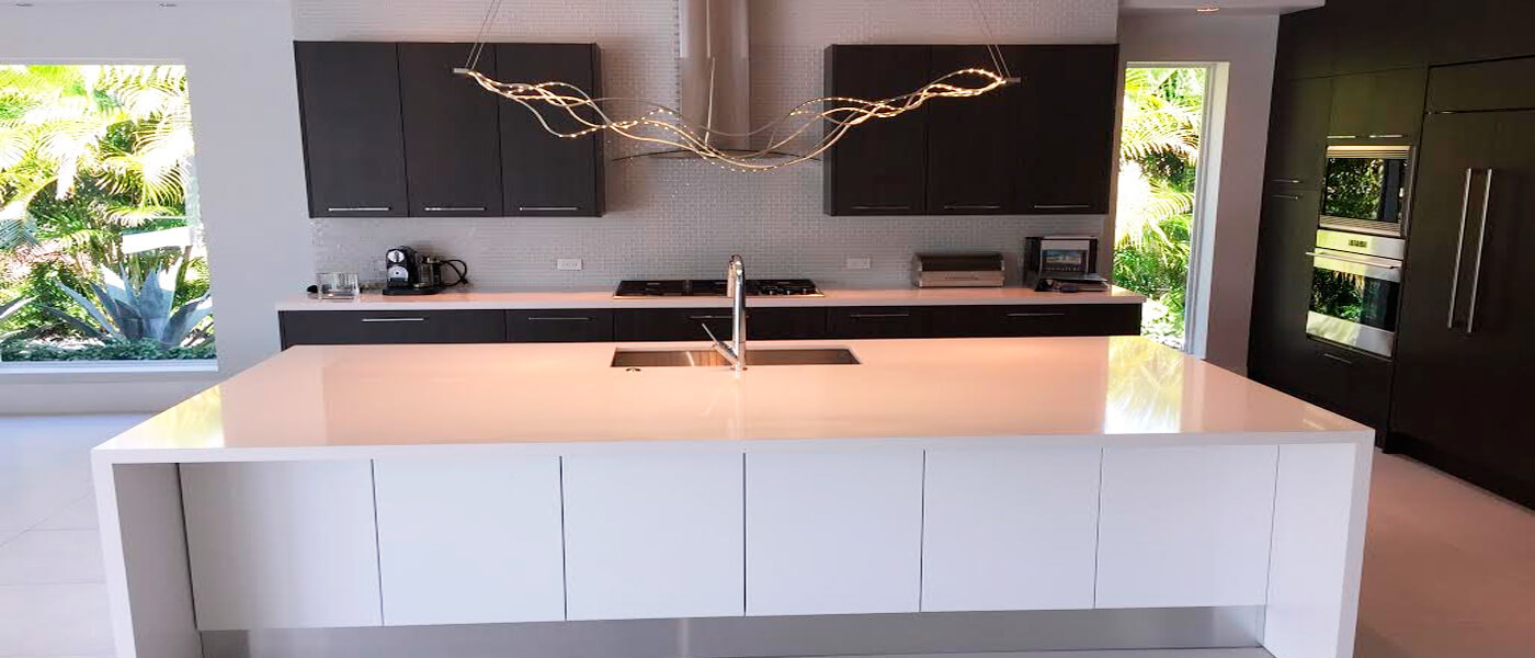 Our glass tops designs are made from the highest quality recycled glass materials. We have a selection of beautiful slab colors that you can complement with LED light panels to create a perfect armony. We are one of the few companies in South Florida that are able and expert to handle this type of material.